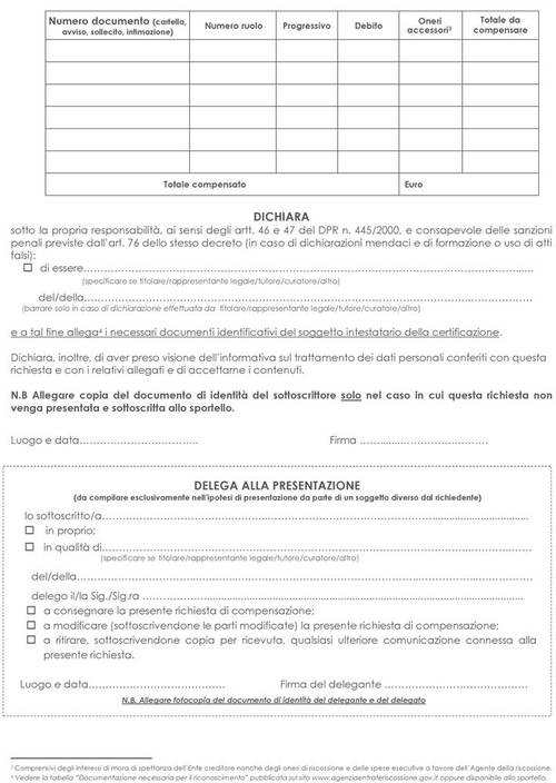 modulo di richiesta compensazione crediti e debiti Di essere ammesso/a a compensare le posizioni a credito con quelle a debito, nei termini stabiliti dall'art. 1 del REGOLAMENTO DI COMPENSAZIONE TRA CREDITI ...