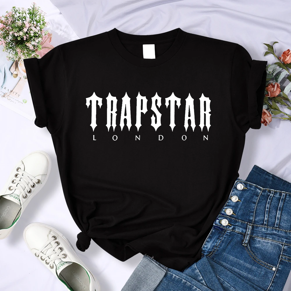 T-shirt da donna stampate con lettera Trapstar traspirante confortevole manica corta moda Casual Tee abbigliamento morbido Hip Hop Streetwear