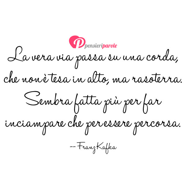 Lettera al padre - Franz Kafka | Recensione - Le Frasi più belle dei Libri «Carissimo padre, recentemente mi hai chiesto per quale motivo sostengo di avere paura di te. Come al solito, non ho saputo darti una risposta…» Con queste parole si apre la lettera che Franz Kafka scrisse a suo padre, Hermann Kafka, nel novembre del 1919. Lettera al padre - Franz Kafka | Recensione «Carissimo padre, recentemente mi hai chiesto per quale motivo sostengo di avere paura di te. Come al solito, non ho saputo darti una risposta…» Con queste parole si apre la lettera che Franz Kafka scrisse a suo padre, Hermann Kafka, nel novembre del 1919. Frasi di Franz Kafka: le migliori solo su Frasi Celebri .it Tutte le frasi di Franz Kafka La trovi in Egoismo e Altruismo di più su questa frase ›› "Nessun regalo è troppo piccolo da donare, e nemmeno troppo semplice da ricevere, se è scelto con giudizio e dato con amore ." Franz Kafka [Tag: donare ] La trovi in Altre frasi d'Amore di più su questa frase ›› Le più belle frasi di Franz Kafka - Aforisticamente Le più belle frasi di Franz Kafka Domenica saremo insieme, cinque, sei ore, troppo poco per parlare, abbastanza per tacere, per tenerci per mano, per guardarci negli occhi. (Lettere a Milena) Ciò di cui abbiamo bisogno sono quei libri che ci perturbano profondamente come la morte di qualcuno che amiamo.