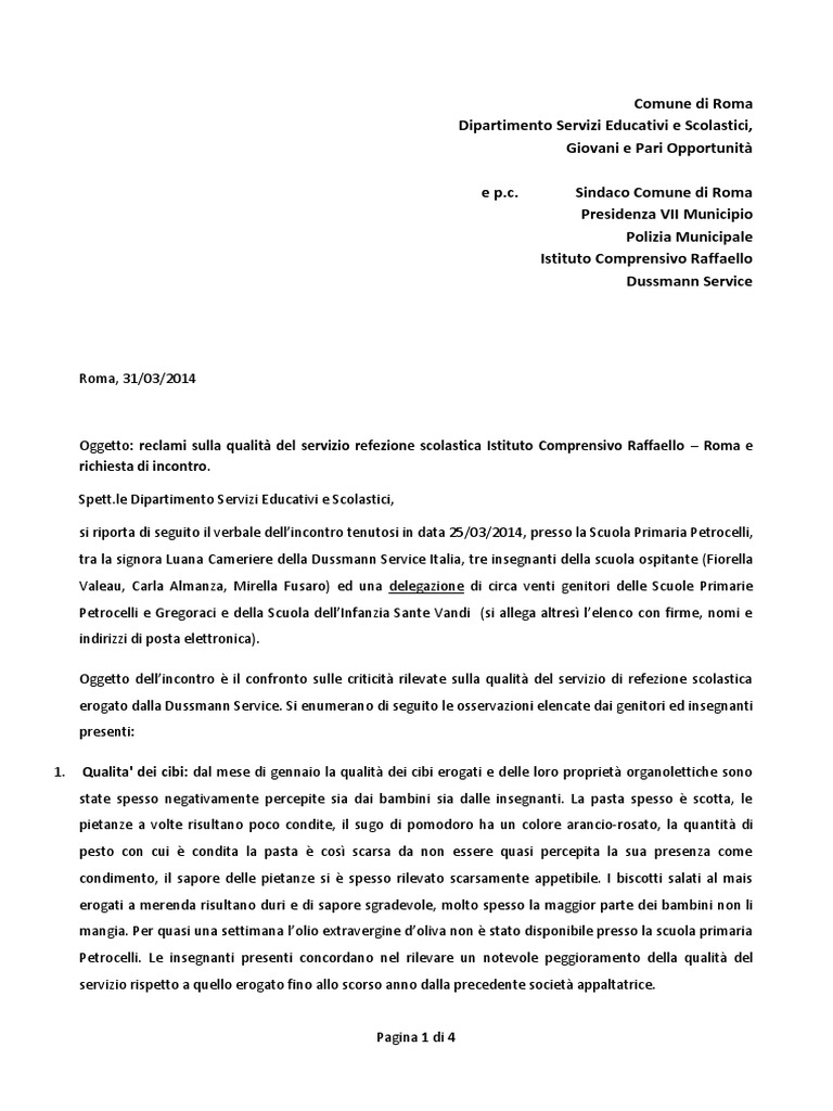 45 fac simile lettera di reclamo mensa