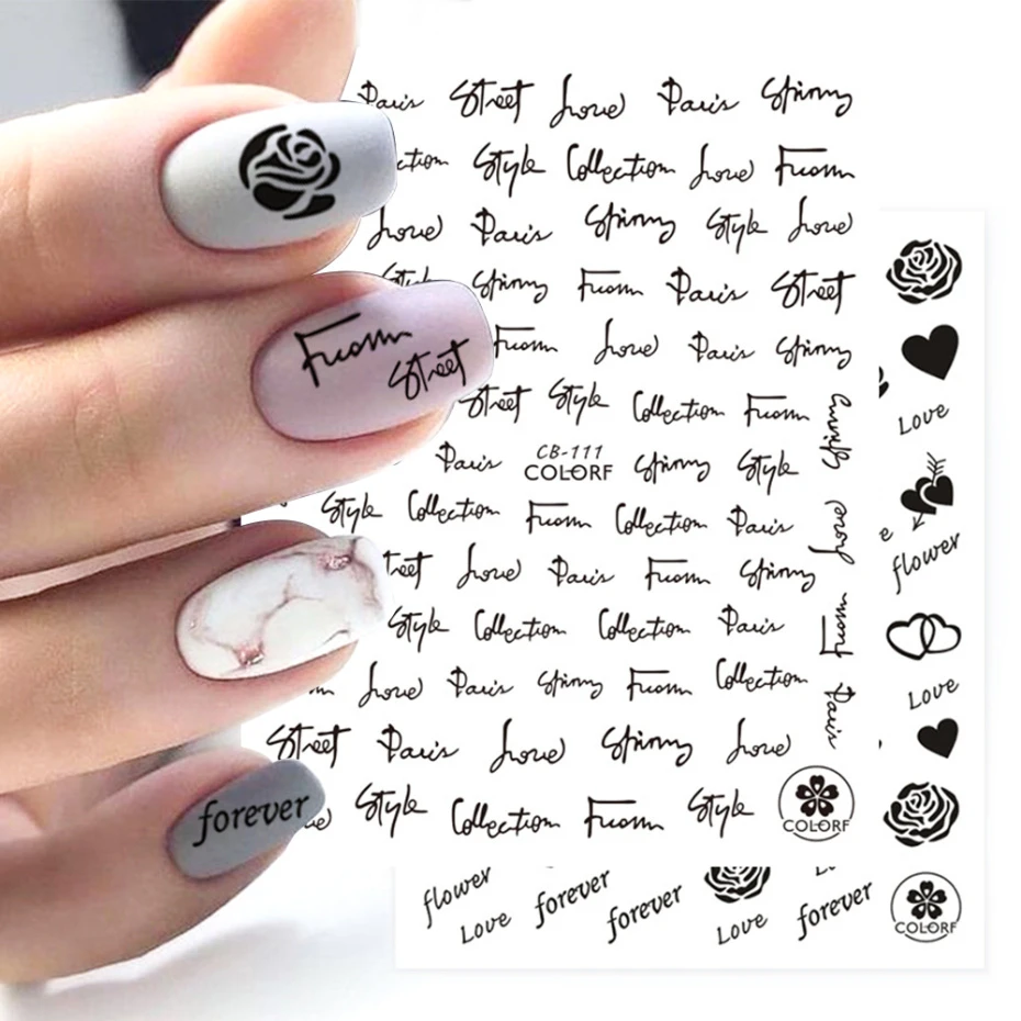 Adesivi per unghie 3D lettera inglese cursori di fiori per lamina per unghie romantico san valentino amore cuore disegni Manicure decorazione NFCB101
